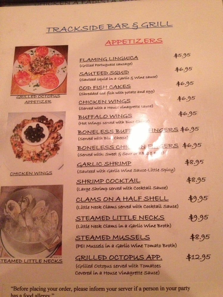 Trackside Bar & Grill, located in Peabody, MA, offers a unique Portuguese dining experience with a variety of seafood dishes like octopus, calamari, and shellfish stew that have received glowing reviews from customers. The restaurant provides a casual and friendly atmosphere, perfect for groups, families, and even date nights. They offer vegetarian options, a full bar, outdoor seating, and even catering services. The authentic flavors of their grilled octopus and codfish cakes have been highlighted as must-try items. The cozy ambiance and attentive service make Trackside Bar & Grill a hidden gem for those looking for fresh, delicious Portuguese cuisine. Don't miss out on their famous seafood stew or pork dishes that are sure to leave you satisfied. Make sure to make a reservation and arrive early to enjoy a memorable dining experience at Trackside Bar & Grill.